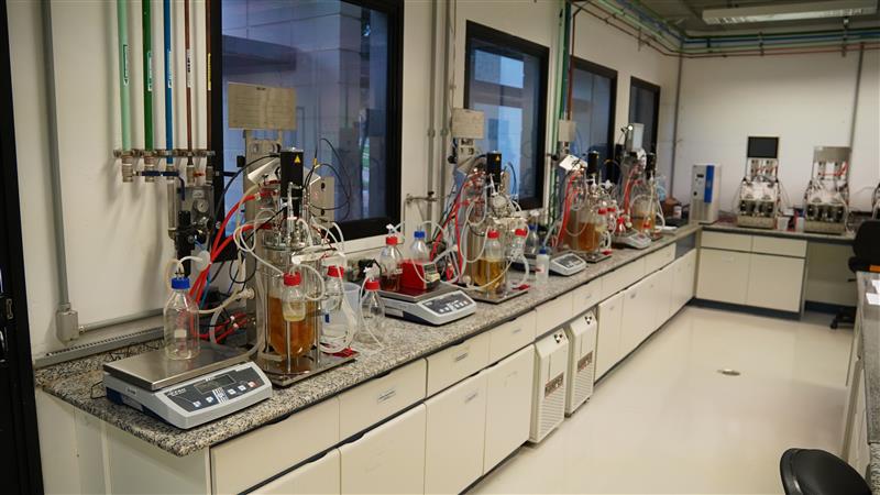 DEB (Bioprocess Development and Scale-up) is a unique facility dedicated to the development of bioprocess technologies, with a focus on sustainability and industrial application. It allows everything from bench-scale experiments to scaling up in an industrially relevant environment, equipped with bioreactors ranging from 60 mL to 350 L, chemical reactors, solid-liquid separation systems, biomass pretreatment equipment, and sensors for process monitoring.
